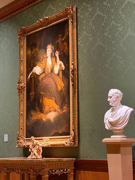 This weekend the weather was perfect (if almost too hot), and I had a friend visiting (hi, alex). We went to The Huntington where we had high tea, saw Eve Babitz’s photos and wandered the gardens. In one of the galleries, I became obsessed with a painting of an actress depicted as Tragedy flanked by the specters of Terror and Pity. At first, it just looked like another lush portrait of a Lady, and then I stepped back and spotted the figures behind her and was like OKAY!!!!!!